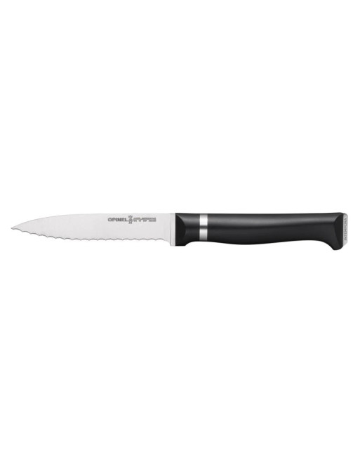Sa lame pointue et microdentée est idéale pour couper et préparer les tomates, les kiwis, les oeufs durs...